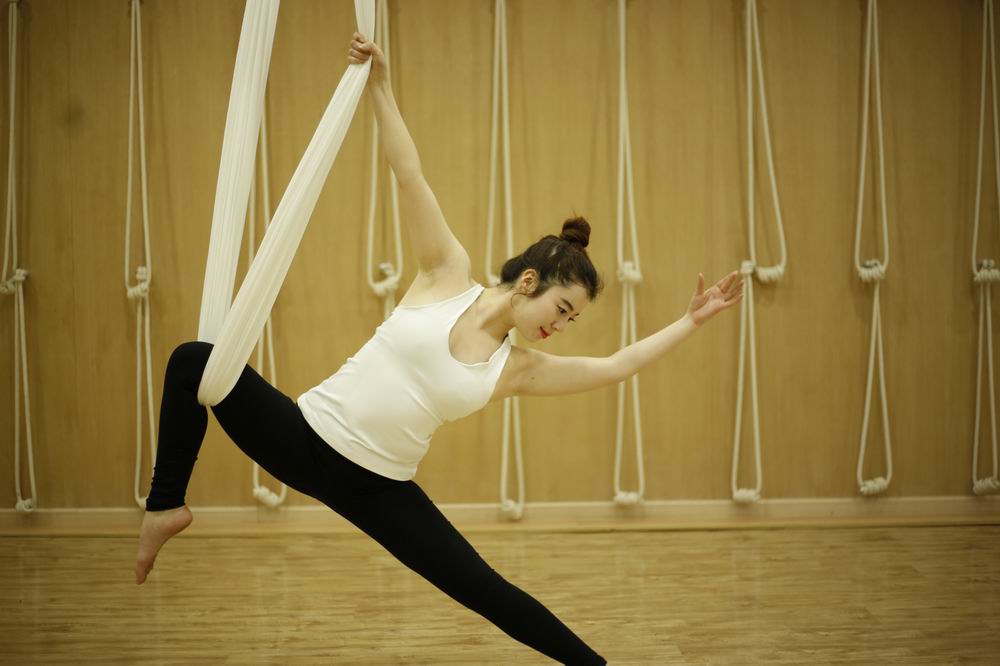 空中瑜伽又叫反重力瑜伽,利用空中瑜伽吊床,完成哈他瑜伽体式,反重力向上运动是在失重的情况下完成的练习者感受到身体体重,加深体式的伸展、阻力和正位能力,具有高效的放松、疗愈、瘦身效果,更具有趣味性和互动性。由于反重力对于脊椎的压力为零,因此空中瑜伽有着很好的医疗效果,也更能帮助练习者锻炼到平时不常用到的肌肉。